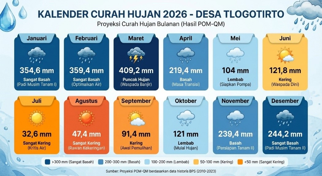 Program KKN ini mencerminkan peran nyata kalangan akademisi dalam menjembatani ilmu pengetahuan dengan kebutuhan riil masyarakat desa. Melalui pendekatan berbasis data dan kondisi lokal, Tim I KKN UNDIP berharap Desa Tlogotirto dapat berkembang menjadi desa agraris yang lebih tangguh terhadap perubahan iklim, mandiri secara ekonomi, dan adaptif dalam menghadapi tantangan sawah tadah hujan.