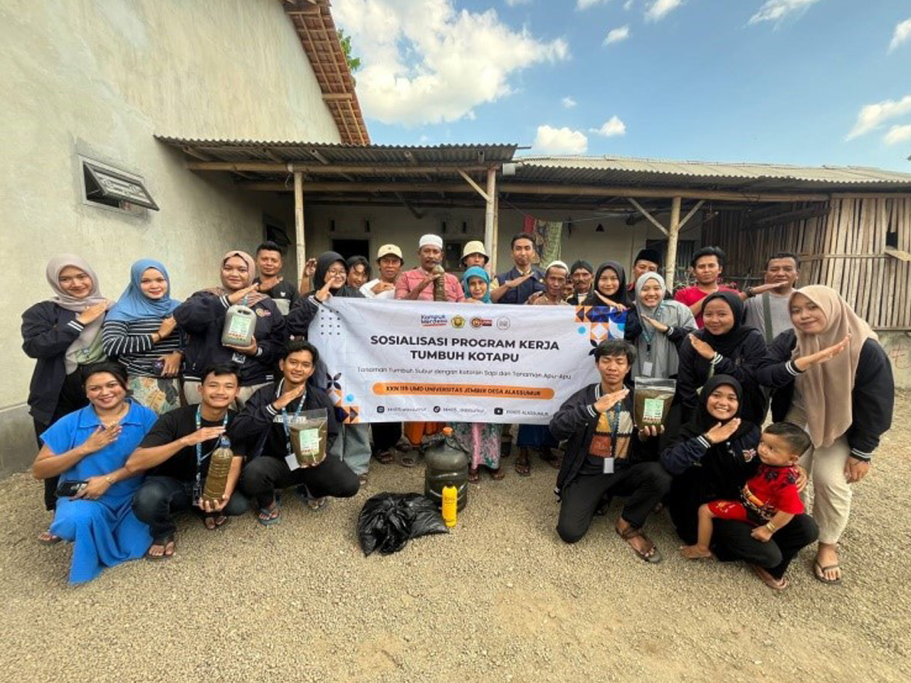 Krajan.id – Dalam upaya mendukung pertanian berkelanjutan di Desa Alassumur, mahasiswa Kuliah Kerja Nyata (KKN) kelompok 115 dari Universitas Jember (UNEJ) telah menginisiasi program inovatif bernama “Tumbuh Kotapu”. Program ini difokuskan pada pemanfaatan limbah ternak, khususnya kotoran sapi, dan tanaman apu-apu untuk menciptakan pupuk organik yang ramah lingkungan.