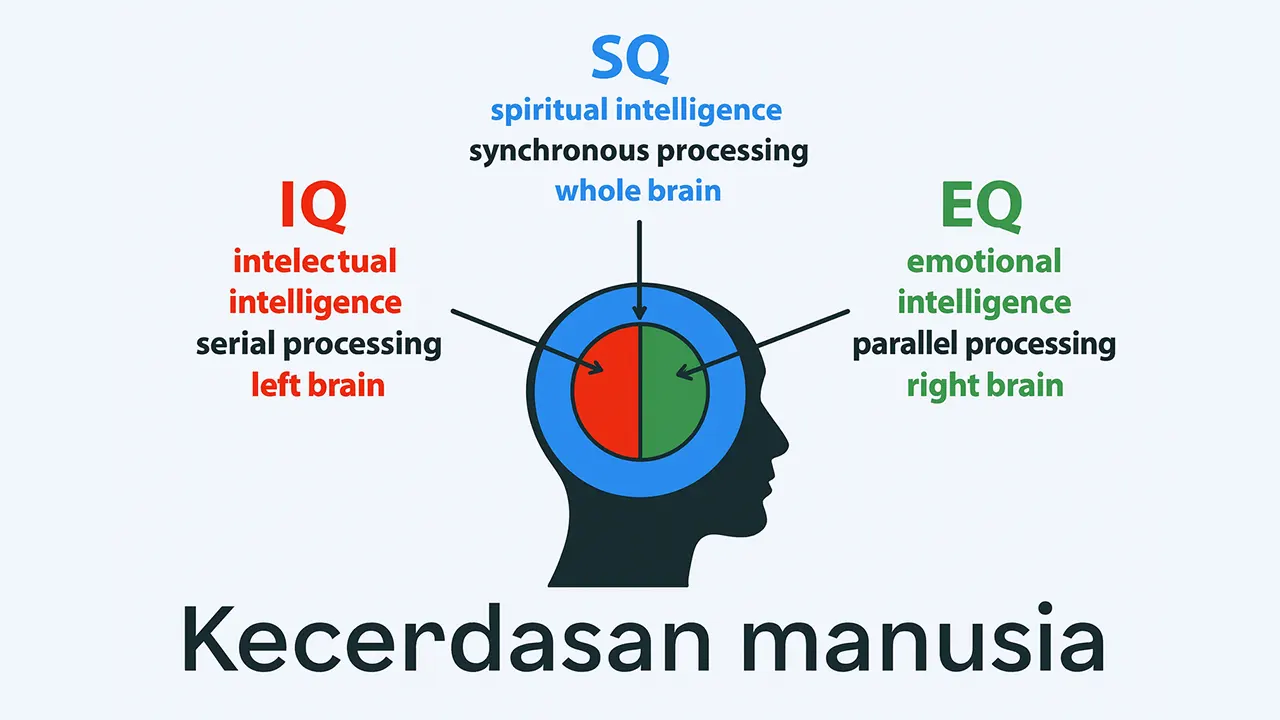 IQ, EQ, dan SQ bukanlah tiga entitas yang berdiri sendiri. Ketiganya saling berkelindan dan membentuk keutuhan pribadi manusia. IQ tanpa EQ dapat melahirkan kecerdasan yang kering empati. EQ tanpa IQ berisiko kehilangan ketajaman analitis.