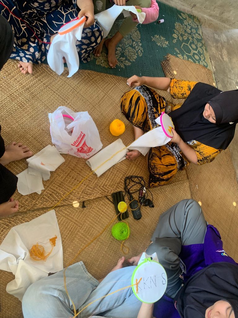 Mahasiswa KKN Siger Berjaya Kelompok 37 saat mengadakan pelatihan kerajinan tapis di Pekon Padang Ratu, Rabu (10/7/2024). (doc. ist)