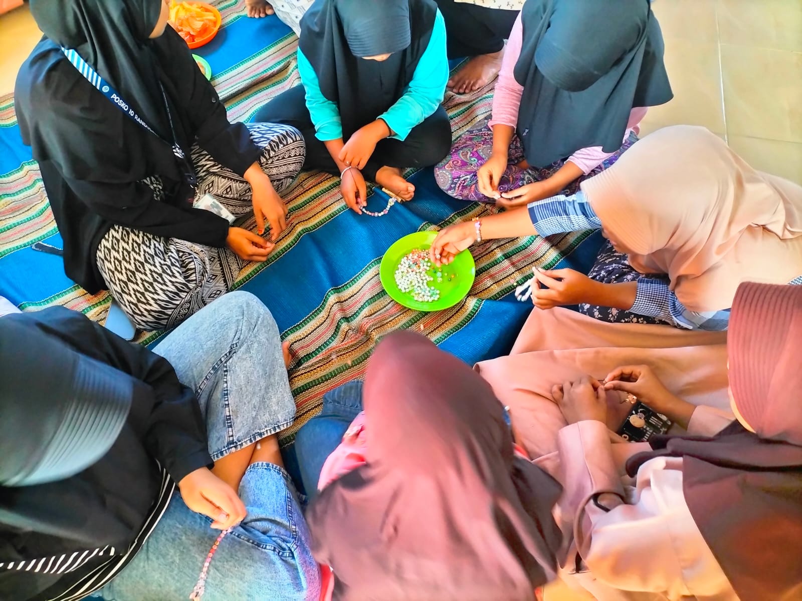 Pelatihan ini dibimbing oleh mahasiswa KKN Posko 10, Oktaviana dan Nurul Fatimah, yang memiliki keahlian dan pengalaman dalam pembuatan aksesoris dari manik-manik. Mereka didampingi oleh anggota KKN lainnya. Para peserta diperkenalkan dengan bahan dan alat-alat yang digunakan, seperti manik-manik berbagai jenis, benang karet, dan gunting.