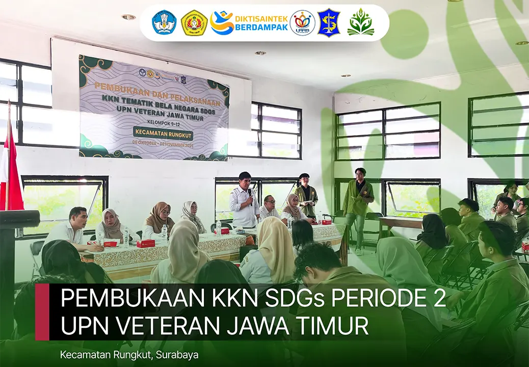 Surabaya, Krajan.id – Semangat kolaborasi antara dunia kampus dan masyarakat kembali bergema di Kecamatan Rungkut, Surabaya. Sebanyak 100 mahasiswa Universitas Pembangunan Nasional “Veteran” Jawa Timur (UPNVJT) resmi diterjunkan ke empat kelurahan dalam program Kuliah Kerja Nyata (KKN) SDGs Batch 2, Selasa, (15/10/2025).