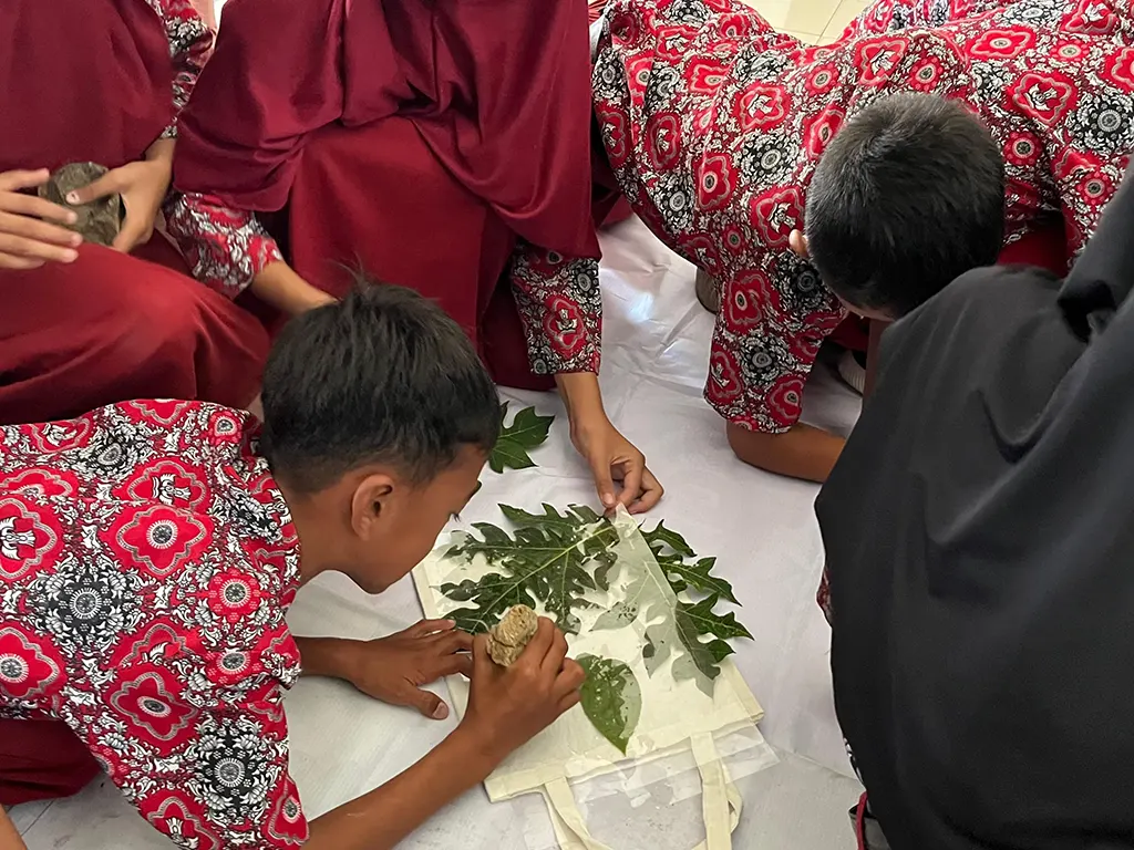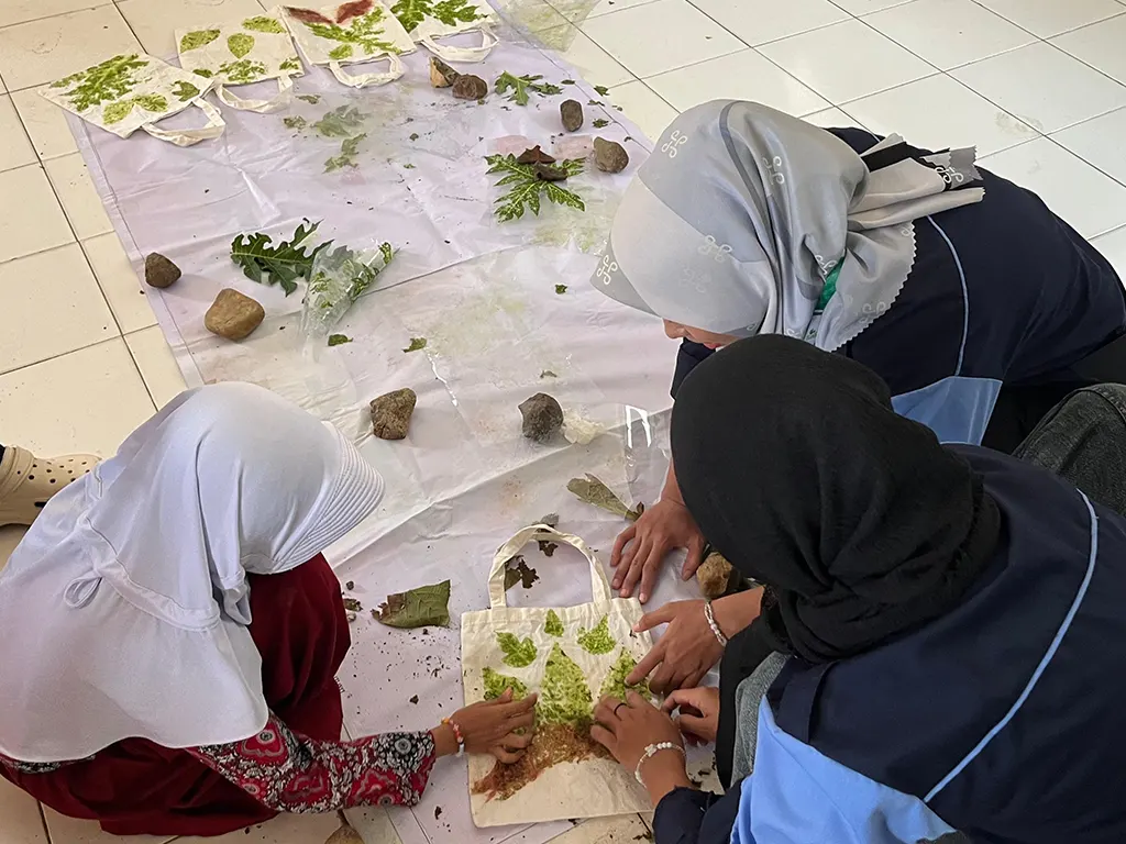 “Kami sangat senang bisa belajar ecoprint. Ini membuat kami lebih kreatif dan juga peduli dengan lingkungan,” kata salah satu siswa dengan antusias.