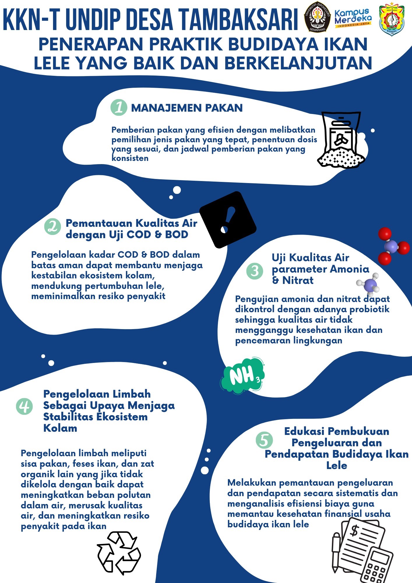 Kegiatan ini bertujuan memberikan edukasi kepada pembudidaya lele di Desa Tambaksari tentang penerapan strategi budidaya yang berorientasi pada keberlanjutan. Para mahasiswa memaparkan dan mendemonstrasikan tahapan-tahapan penting untuk menciptakan praktik budidaya yang lebih efisien, ramah lingkungan, dan menguntungkan.