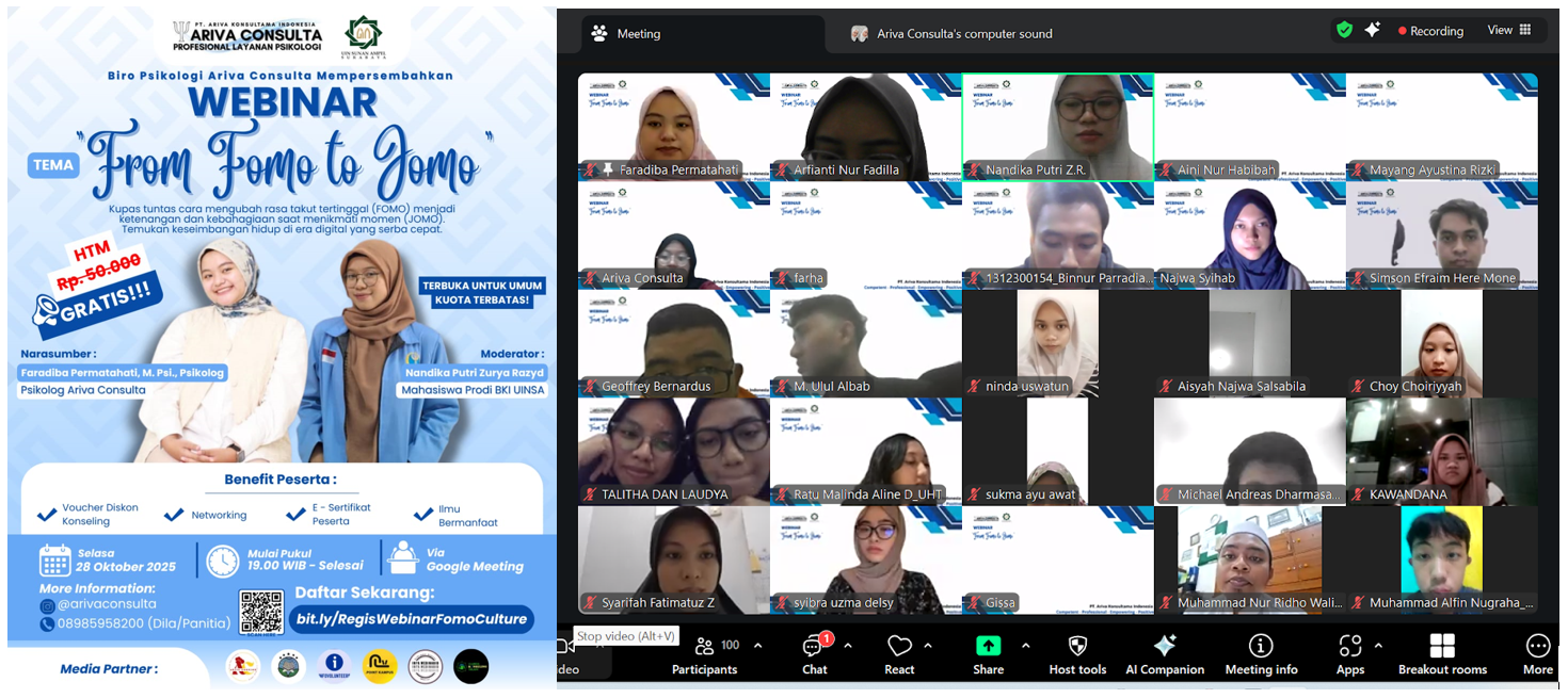 Kegiatan webinar yang mengusung tema “From FOMO to JOMO” ini menjadi pengingat bahwa di tengah derasnya arus informasi, manusia tetap membutuhkan ruang untuk diam, jeda, dan menyadari dirinya sendiri.